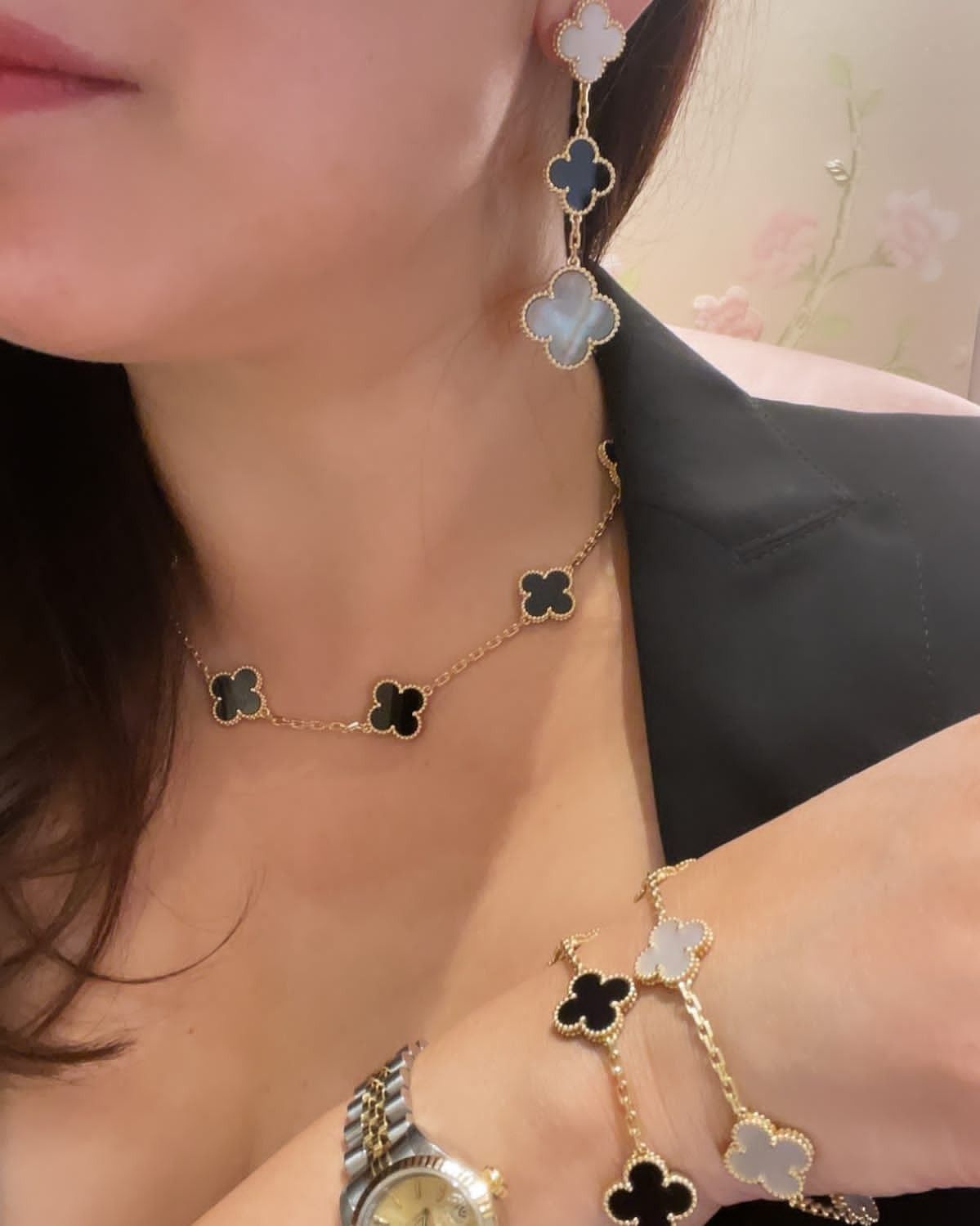 Got the gold bracelet and the white clover necklace for a few weeks now — both are gorgeous! They look just like luxury jewelry, but thankfully don’t cost a fortune.